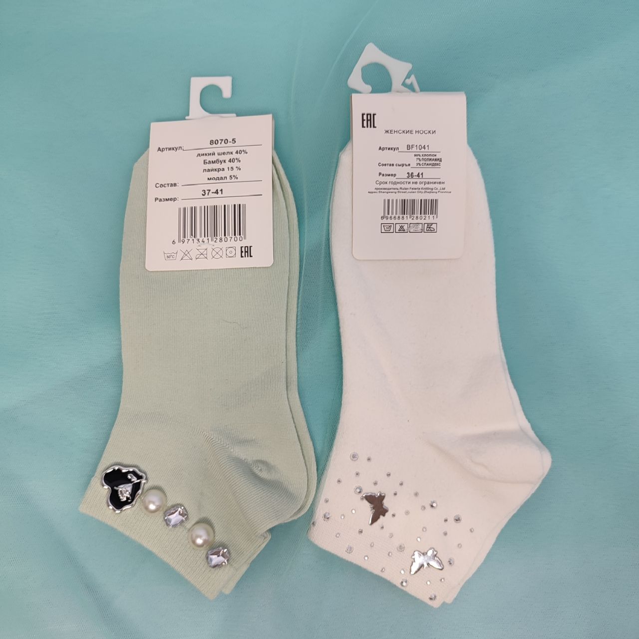 Женские носки укороченные, украшенные крупными стразами Дикий шелк 40%, Бамбук 4...