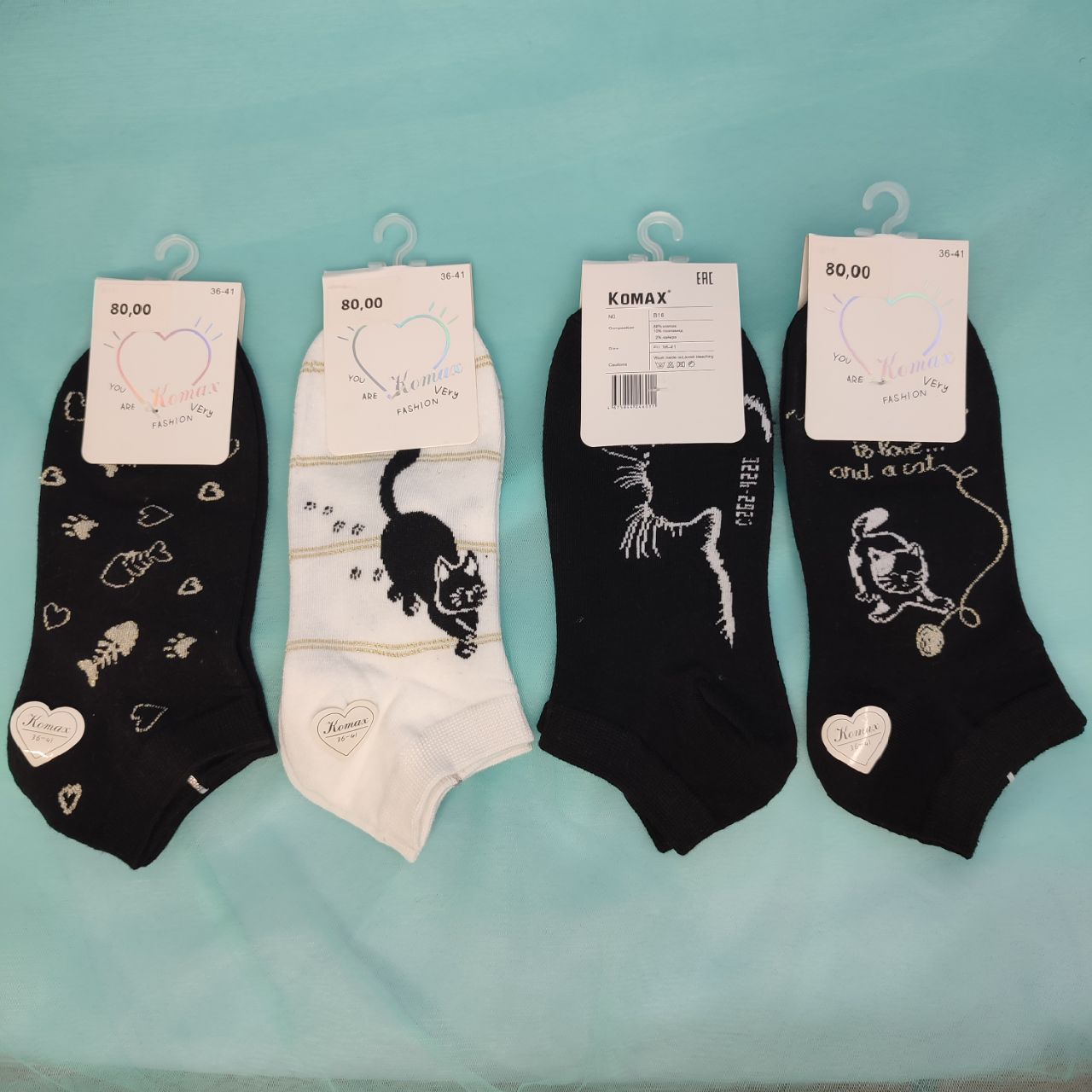 Носки женские укороченные следки, размер 36-41, 1 пара (с кошками)