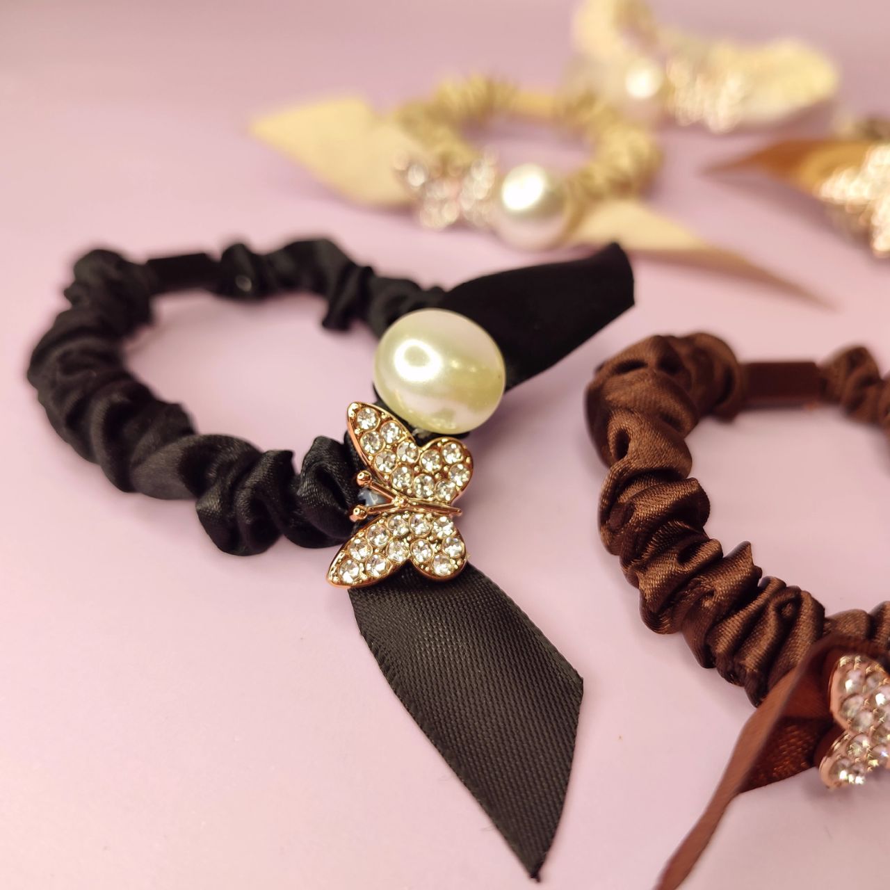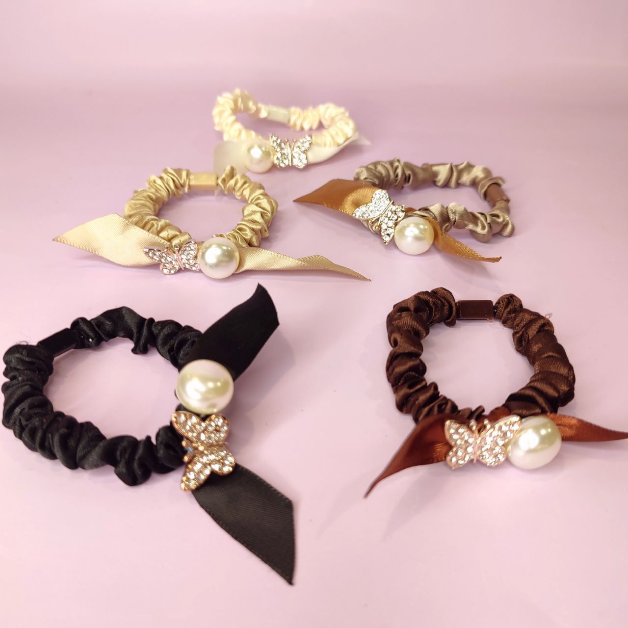 Шелковая резинка для волос с бабочкой, 1шт