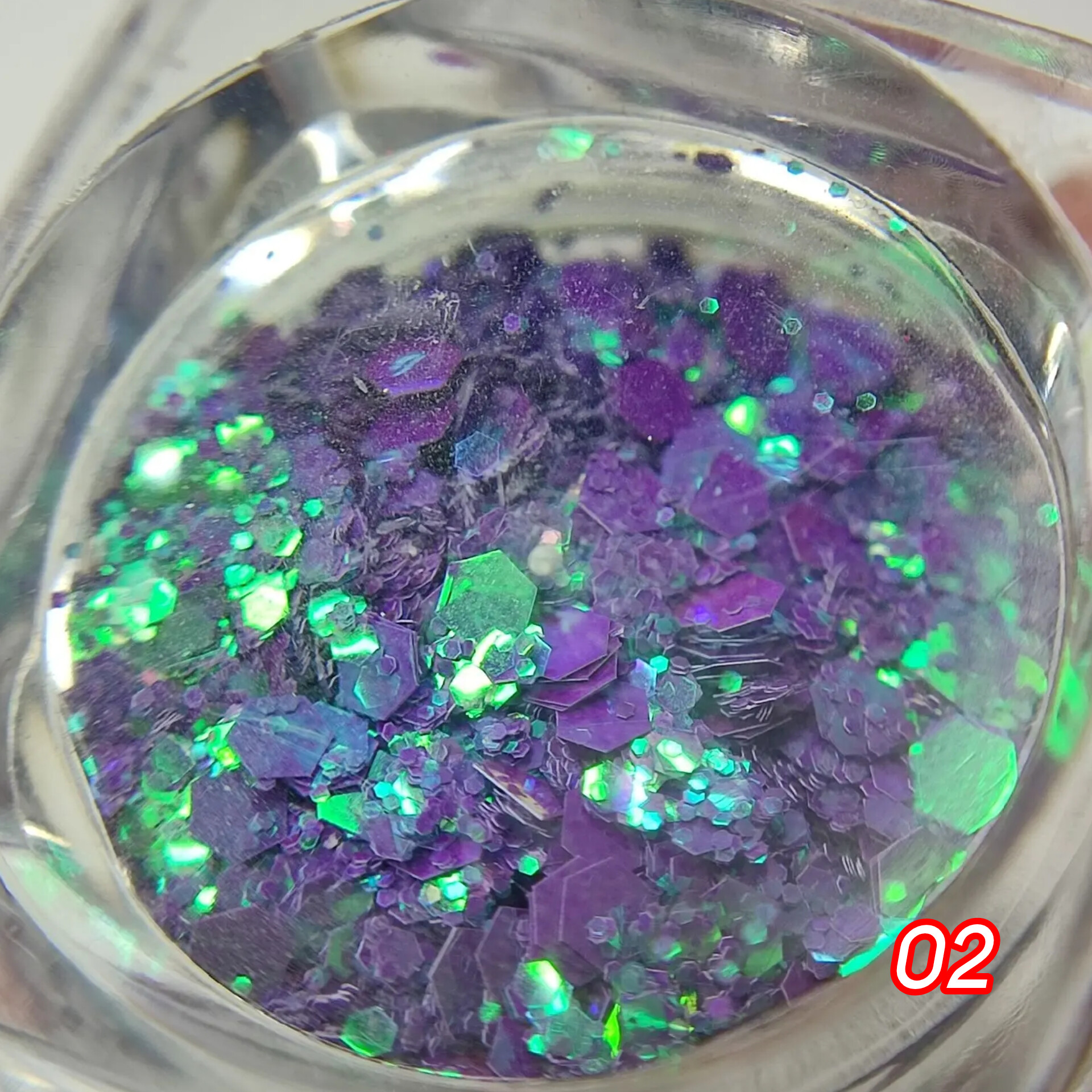 Дизайн для ногтей шестигранники микс светоотражающие, 1шт