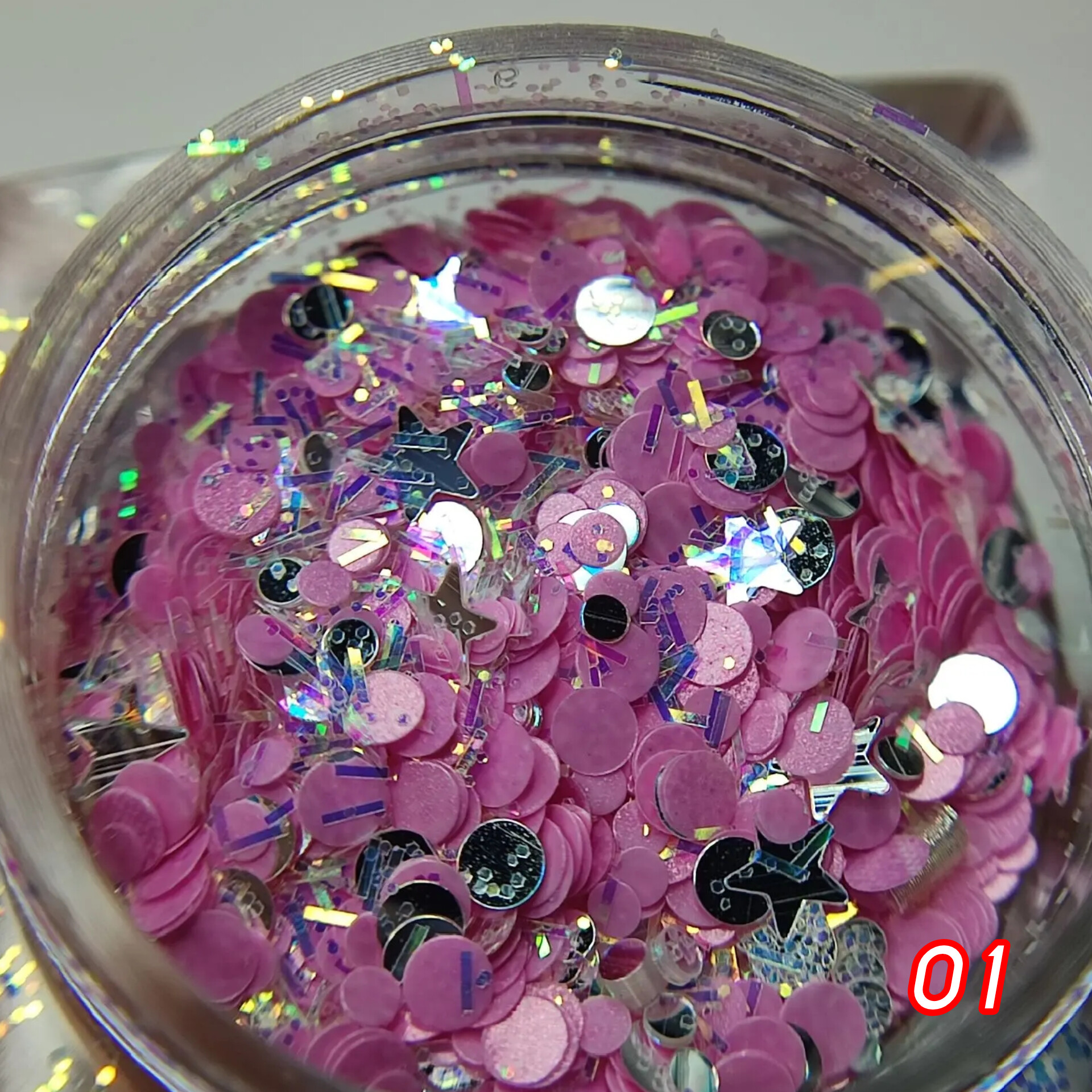 Дизайн для ногтей в виде кружков и звездочек, размер микс. Хорошо ложатся на неп...