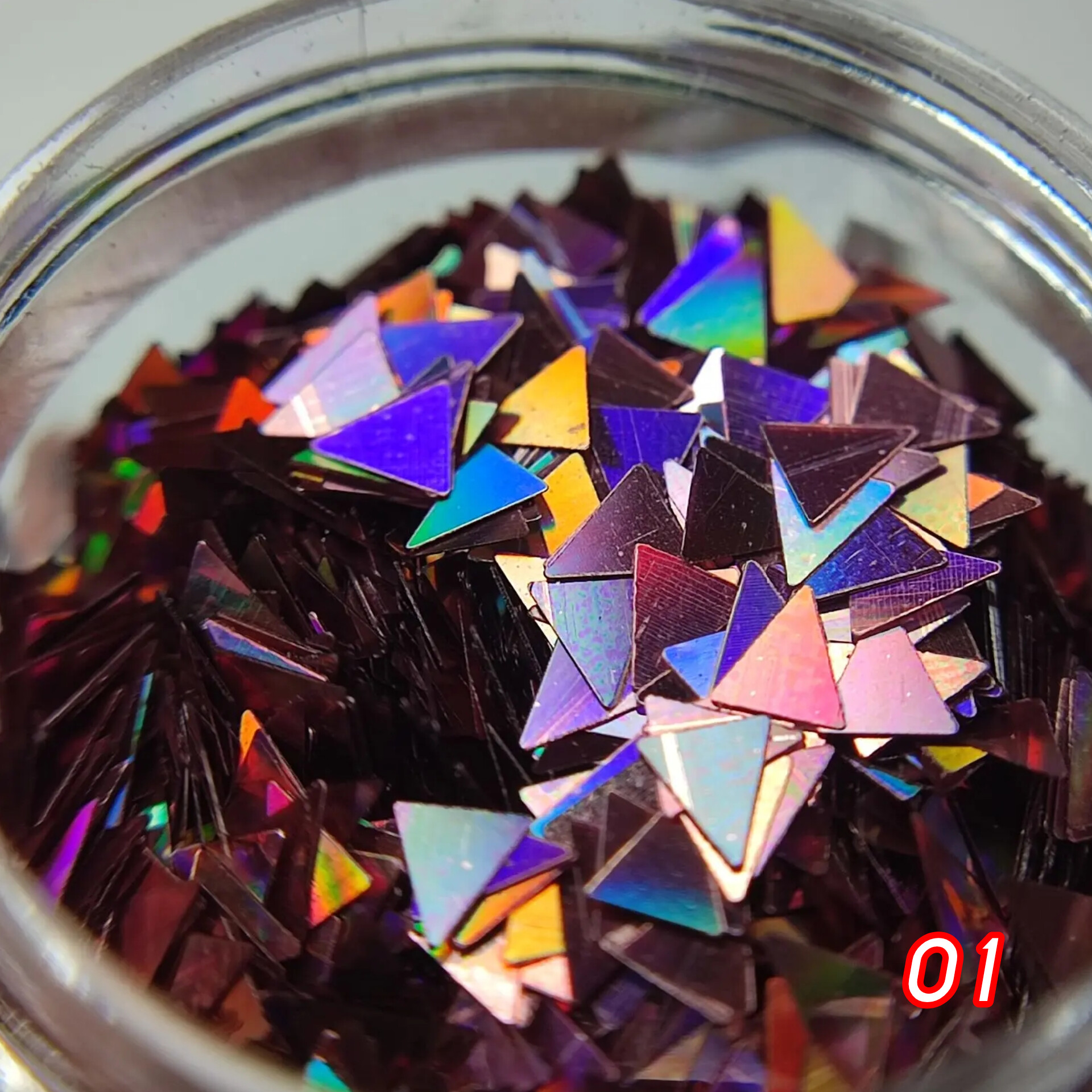 Дизайн для ногтей в виде голографических треугольников. Хорошо ложатся на непрос...