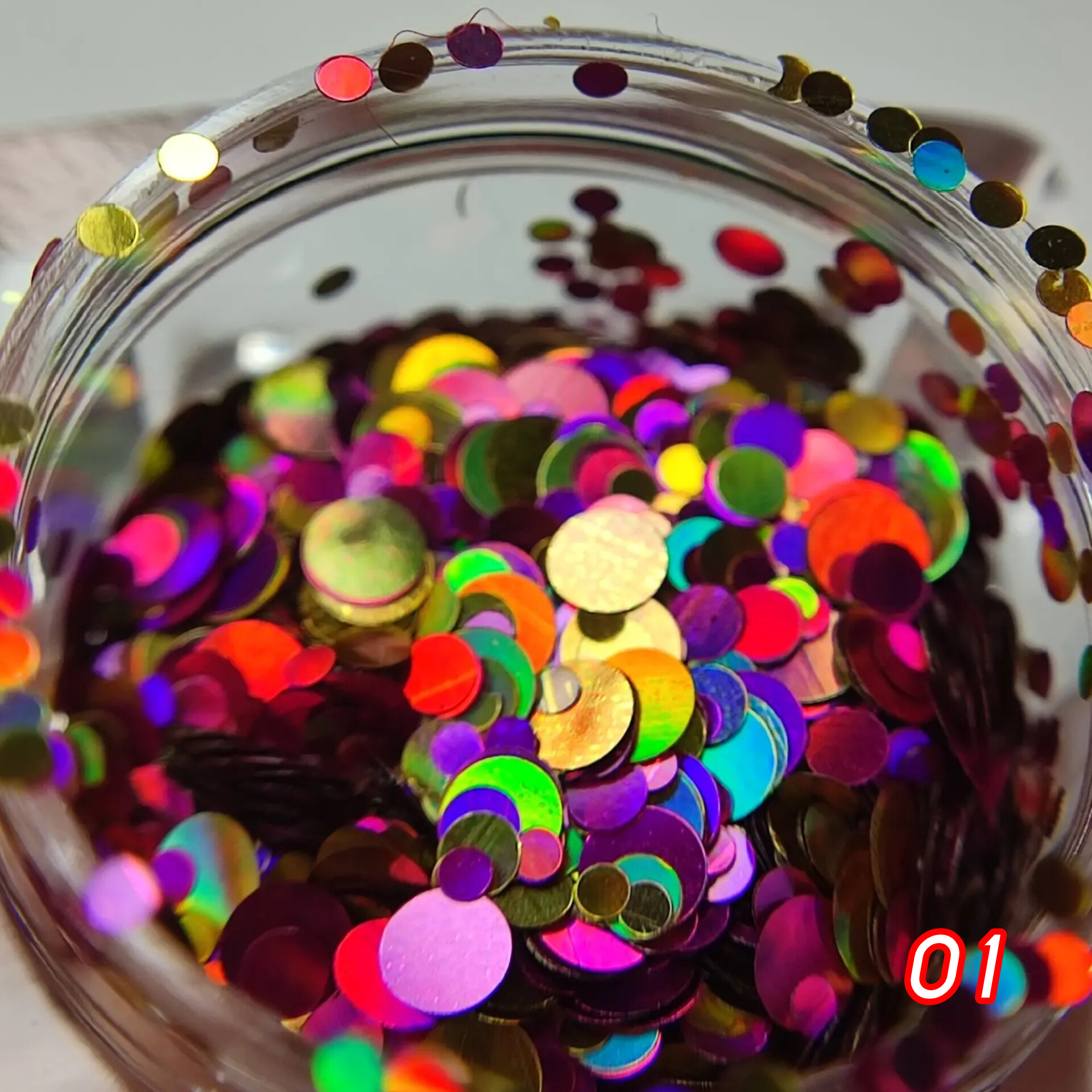 Дизайн для ногтей в виде разноразмерных блестящих кружков. Хорошо ложатся на неп...