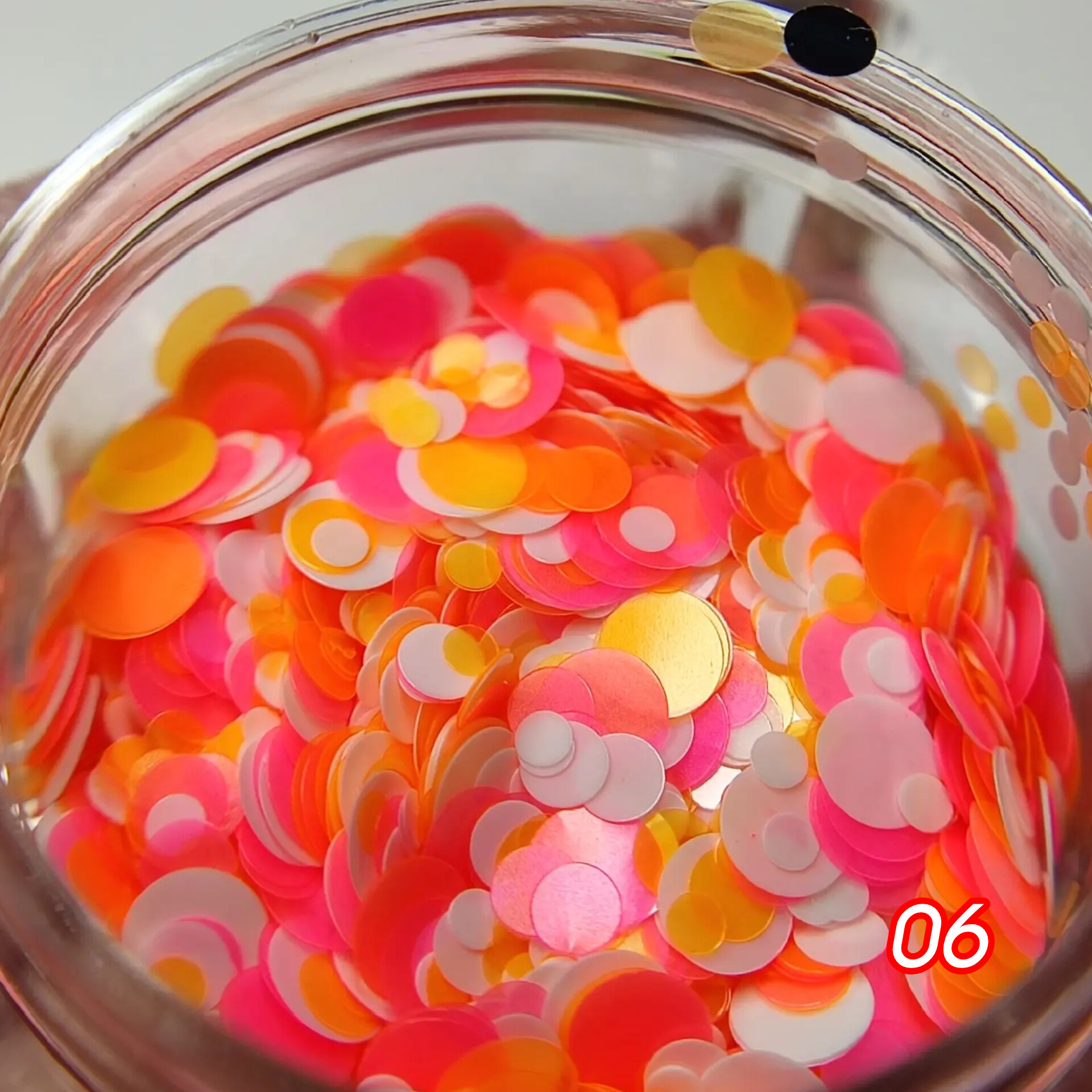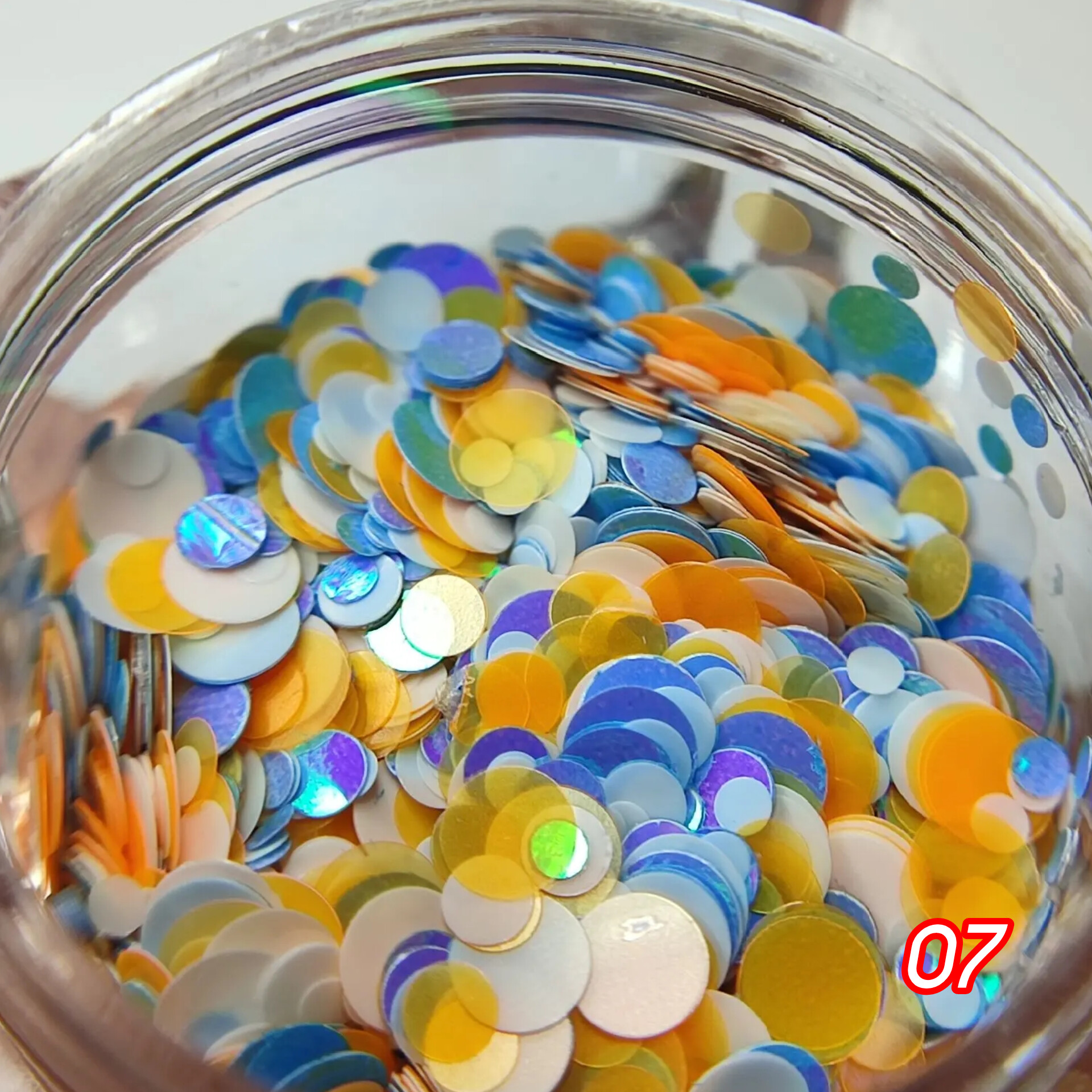 Дизайн для ногтей в виде разноразмерных кружков. Хорошо ложатся на непросушенное покрытие, поддается опиливанию. Может использоваться в различных дизайнах ногтей, легко смешивается с базами и гелями, а также в качестве дополнения к основному дизайну.
