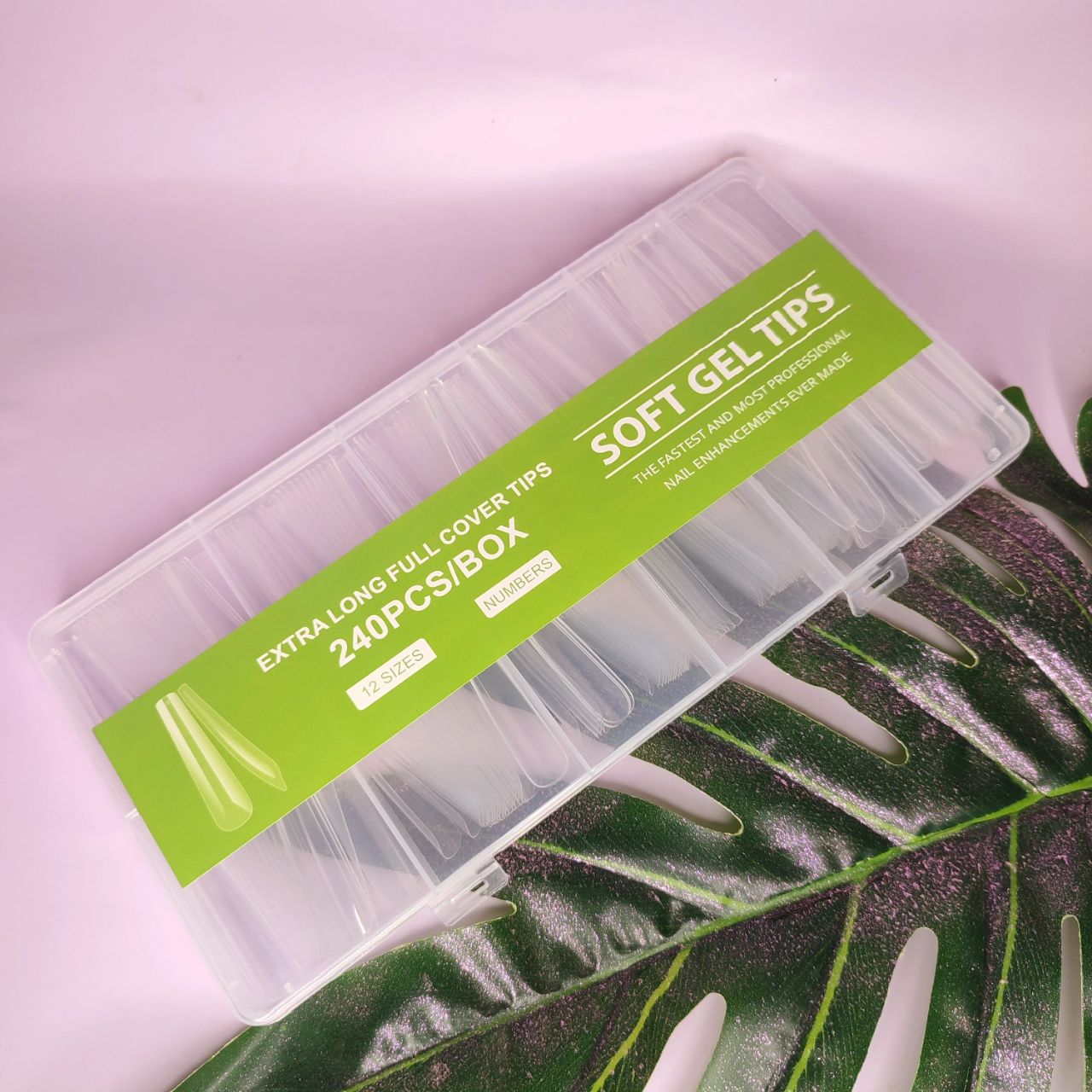 Гелевые типсы в наборе 240шт, удлиненный миндаль (стилет)
