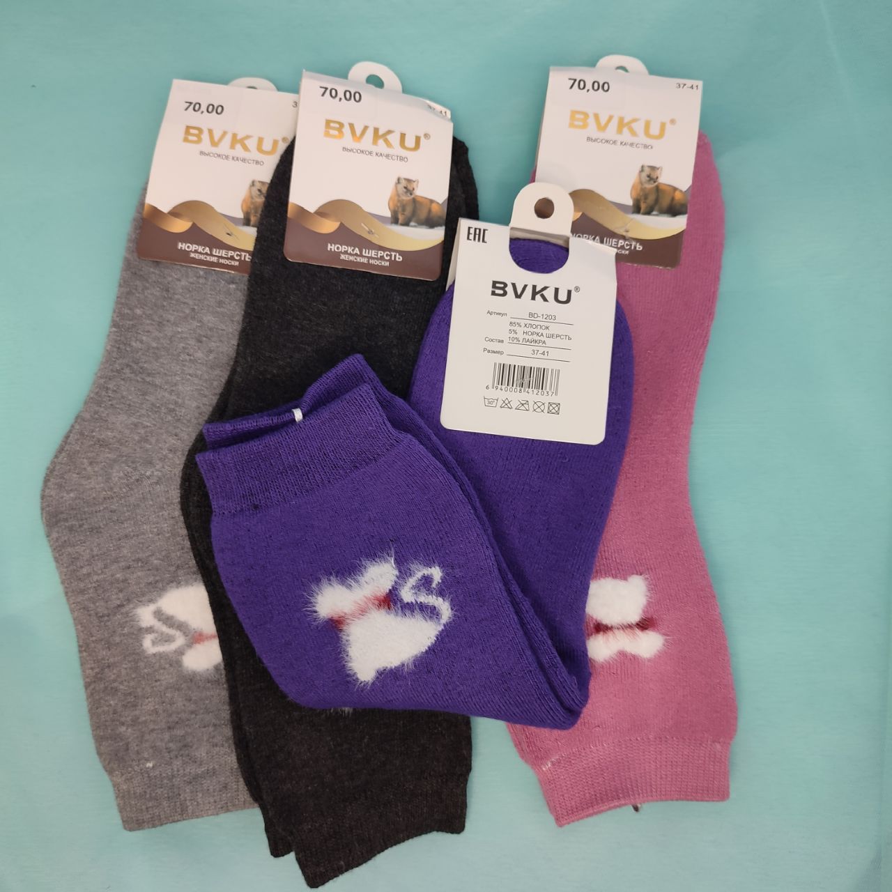 Женские утепленные хлопковые носки BVKU Хлопок 85%, Лайкра 10%, Норка шерсть 5% ...