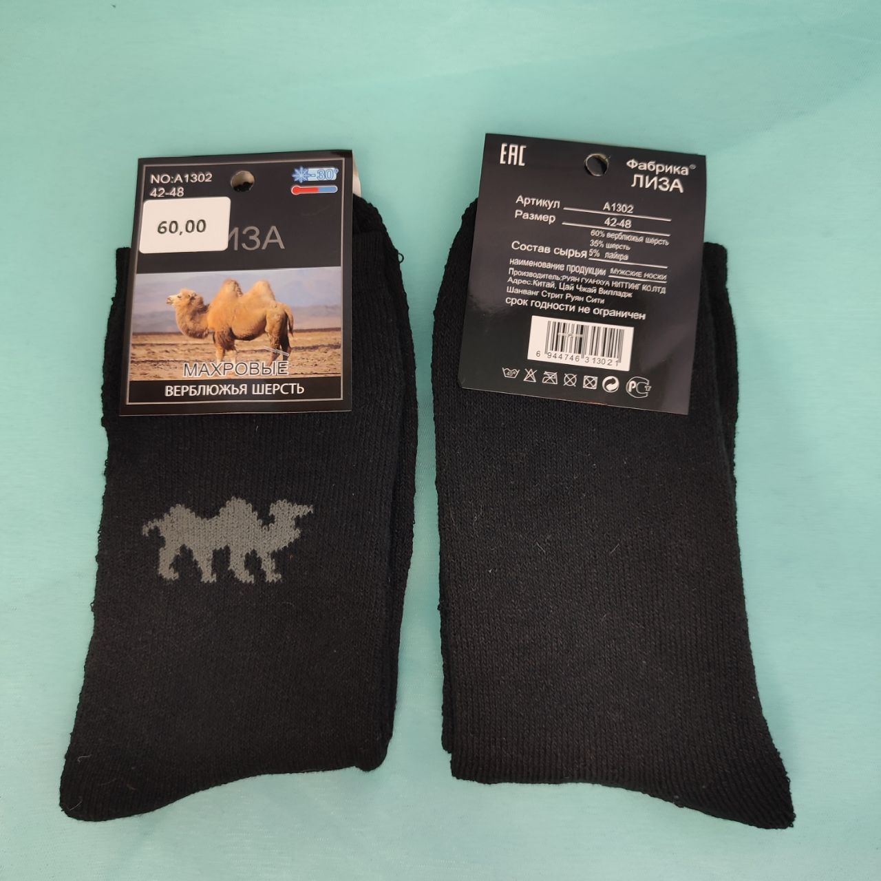 Термо носки мужские, махровые. Из верблюжьей шерсти, с антибактериальными и терм...
