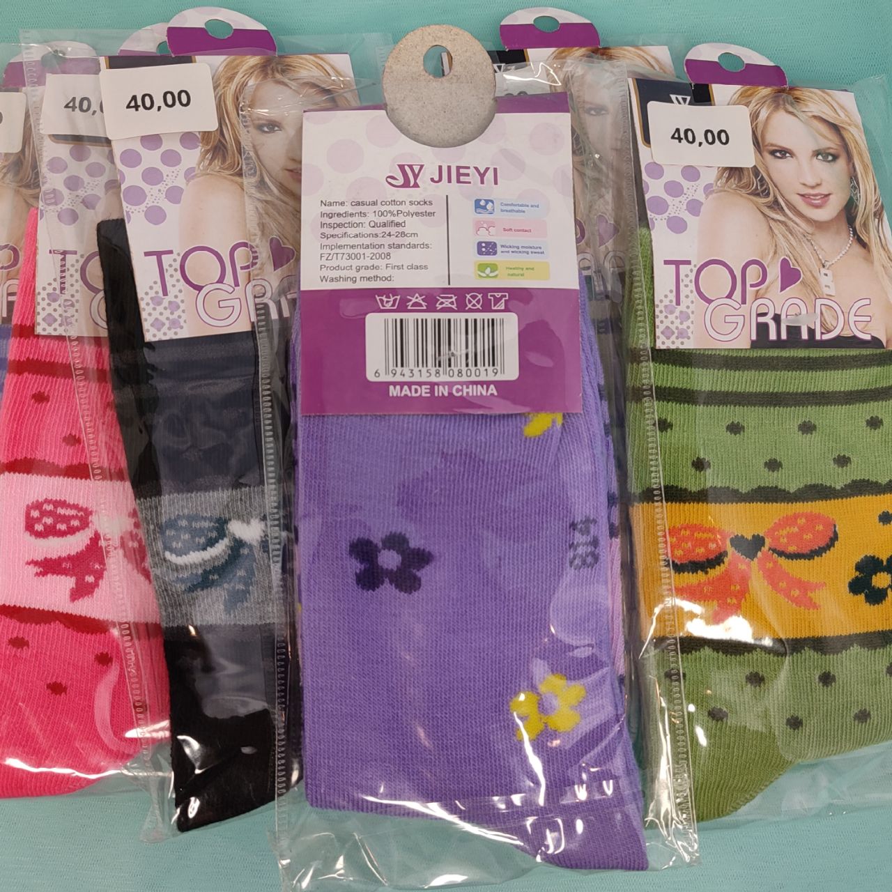 Носки женские, длина 24-28см, 1 пара (с цветочками)