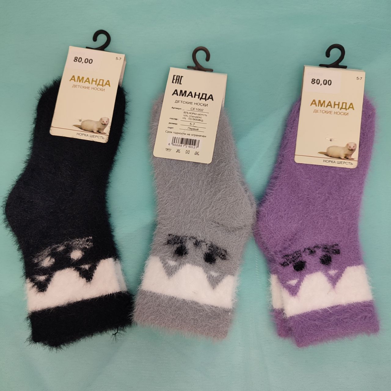 Теплые носки детские, дышащие, пушистые, тёплые. Из шерсти норки, до -30° Шерсть...
