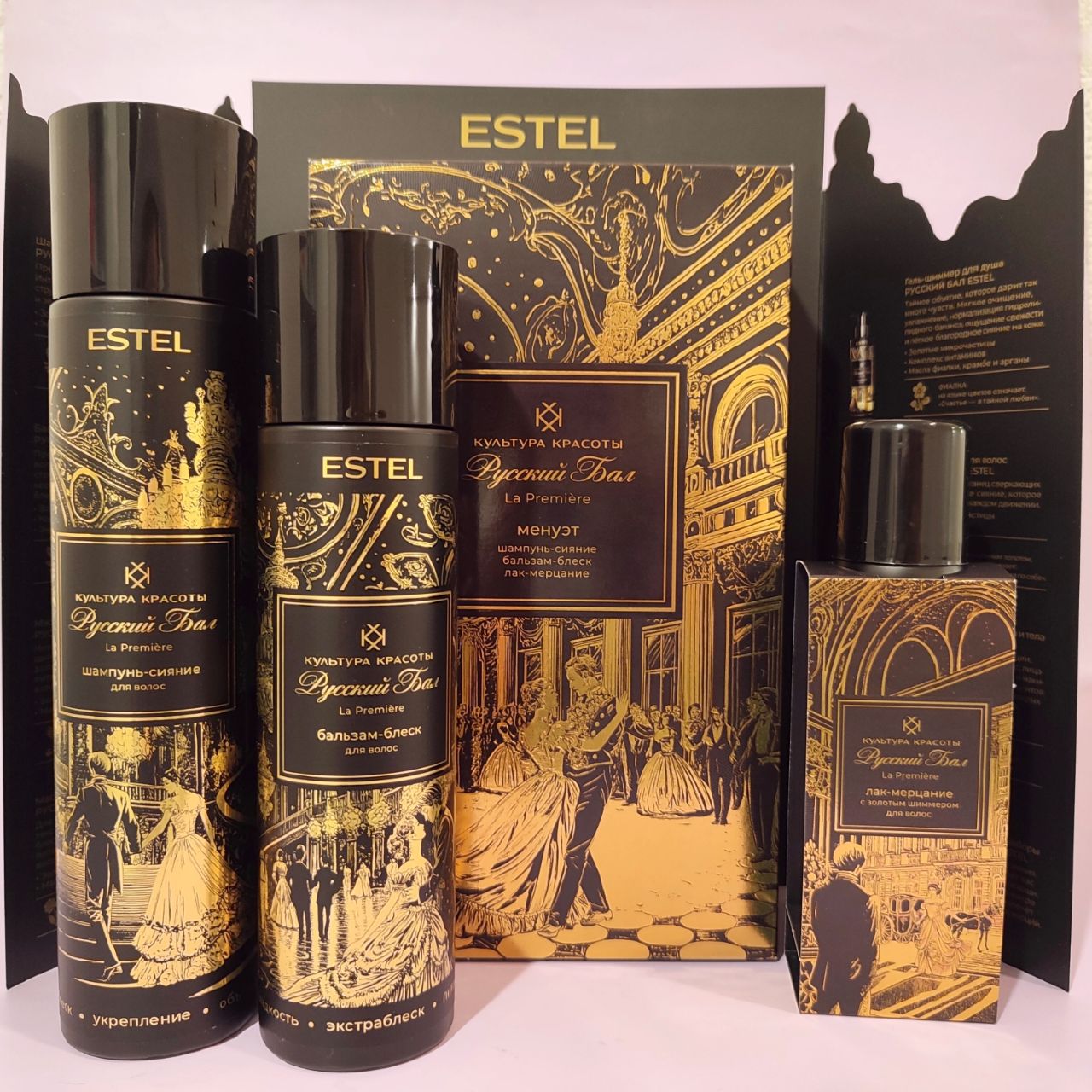 Estel Русский бал Менуэт Шампунь 300мл, бальзам 250мл, лак-мерцание для волос 75мл